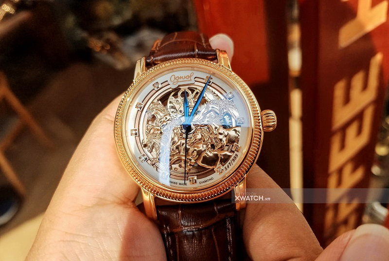 Đồng hồ cơ Ogival Cá Nhảy với mặt số dạng khung xương, phô diễn chuyển động cơ khí bên trong