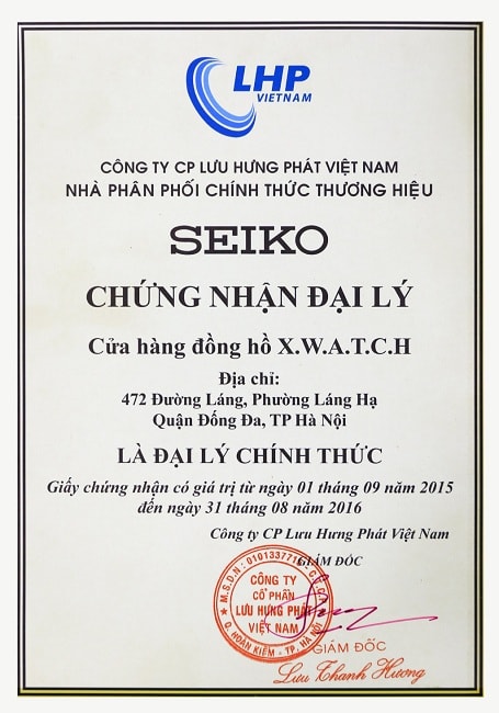 1. Giấy chứng nhận đại lí chính hãng của Seiko - Thương hiệu đồng hồ số 1 Nhật Bản