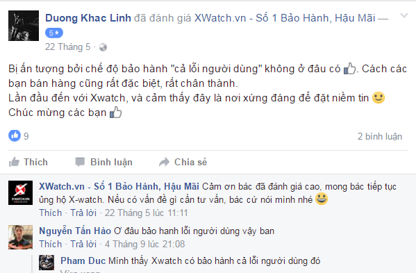 Xwatch cũng không quên, nhiều khách hàng đã gửi lời khen ngợi, động viên sau khi đến Xwatch mua đồng hồ hay sửa chữa. Đó chính là động lực giúp Xwatch vững vàng hơn để ngày càng phục vụ anh em tốt hơn.