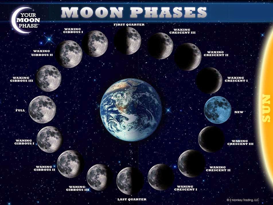 Chu kỳ hoạt động của mặt trăng được ghi lại theo 8 pha: