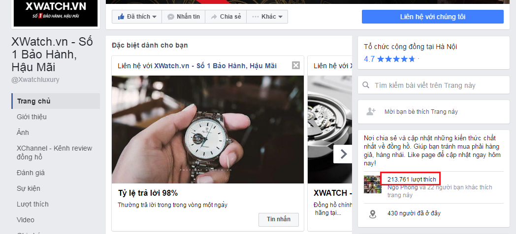 Không chỉ là nơi bán hàng, XWatch còn tạo ra sân chơi bổ ích cho người yêu đồng hồ chính hãng. Fanpage XWatch với hơn 213.000 người tham gia là nơi tiếp lửa đam mê và gắn kết anh em yêu đồng hồ ở khắp mọi nơi.