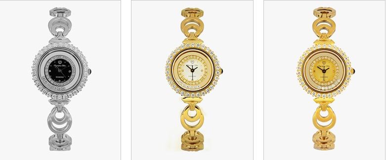 Thiết kế đồng hồ dành cho phái đẹp có xu hướng kết hợp dây đeo mạ vàng với kim cương, hoặc dây đeo có thiết kế như lắc tay có nạm đá quý swarovki lấp lánh. Một số mẫu được ưa chuộng hiện nay thuộc dòng Olympia Star với chất lượng đảm bảo và giá cả phải chăng.