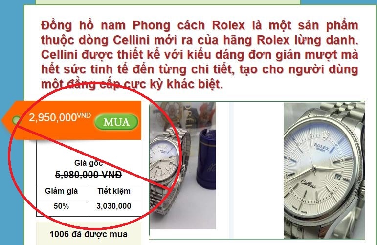Mua được đồng hồ thương hiệu lớn, đẹp, sang mà giá thì rẻ hơn mấy lần niêm yết - nhìn qua có vẻ rất hấp dẫn. Con buôn sẽ đưa ra rất nhiều biện luận hoặc những chương trình khuyến mãi giảm giá sốc để dẫn người dùng vào bẫy.