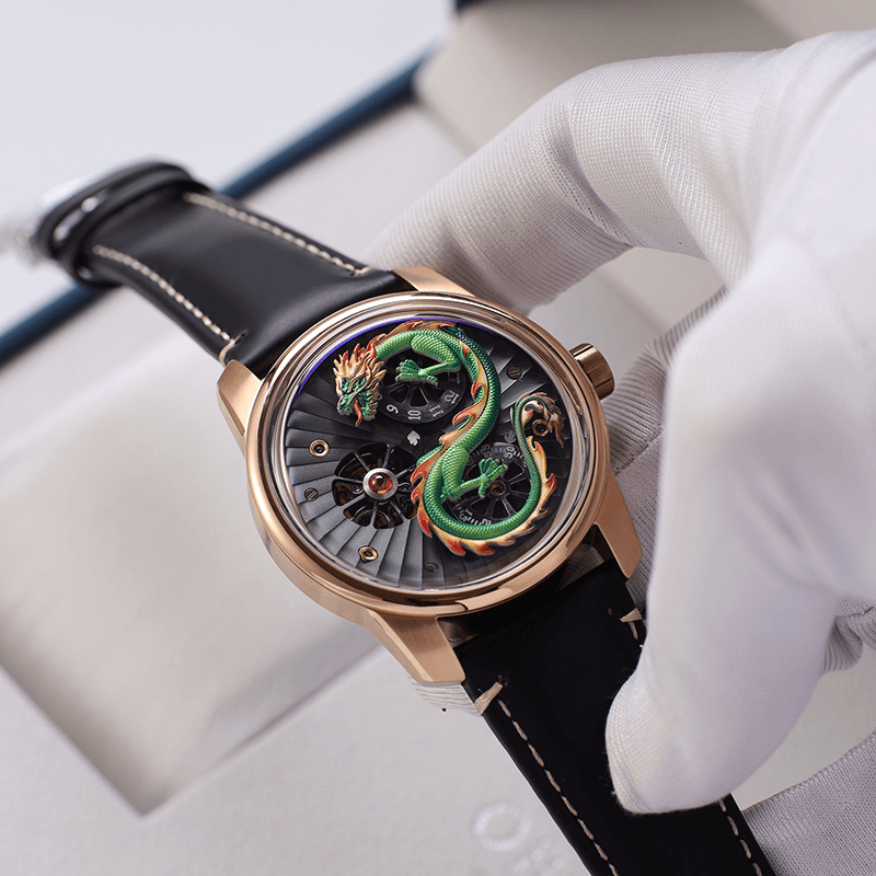Lấy cảm hứng từ linh vật Rồng thể hiện quyền uy, sức mạnh trong văn hóa phương Đông, kết hợp cùng tinh hoa chế tác đồng hồ cao cấp, các nghệ nhân nhà Oblvlo đã cho ra đời tuyệt tác thời gian mang tên Rồng Đỏ với thiết kế ĐỘC NHẤT, VÔ NHỊ!