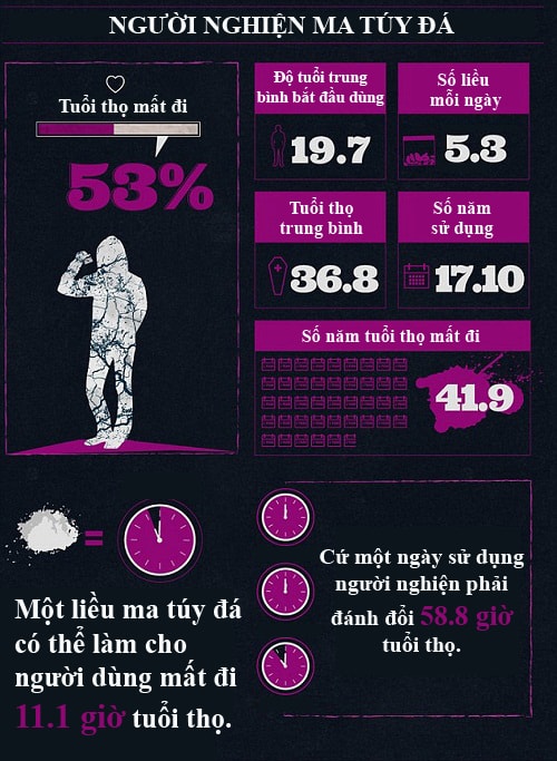 *Hoa thị thứ 4: Heroin (Chích) – Mất đi 41,2 năm tuổi thọ.