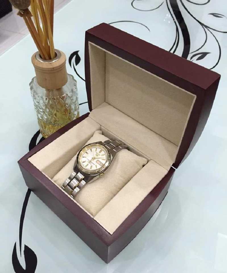 Với hộp đựng này bạn không cần phải tìm mua bởi mỗi chiếc đồng hồ chính hãng đều có hộp riêng của hãng đi kèm. Nếu muốn chiếc đồng hồ được đặt trong một chiếc hộp mới có thiết kế đẹp mắt hơn, bạn có thể chọn mua những chiếc hộp đơn ở bên ngoài.