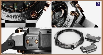 Ngoài ra, những chi tiết như ốc vít, kim đồng hồ, biểu tượng MR-G, núm chỉnh đồng hồ…được chế tạo bằng chất liệu hợp kim đặc biệt của người Nhật có tên gọi là Oboro-gin (tạm dịch: Trăng mờ). Hợp kim này nổi tiếng khắp thế giới bởi độ bền cao, siêu cứng nhưng dễ kéo sợi, được cấu thành từ nhiều kim loại khác nhau bao gồm ¼ bạc và ¾ đồng, và 3% là vàng nguyên khối.
