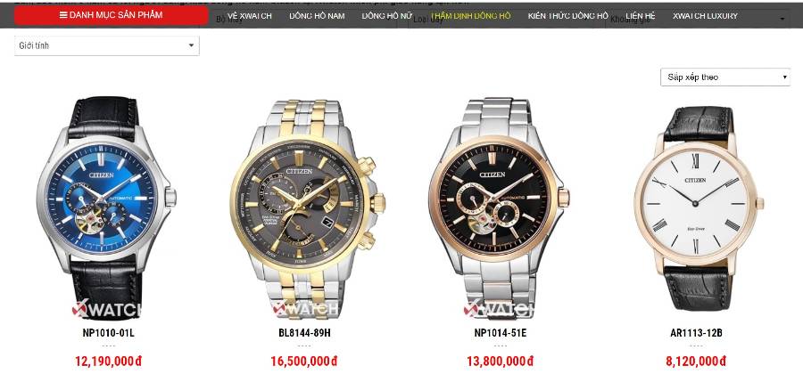 Tham khảo giá đồng hồ Citizen tại web Xwatch