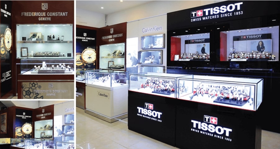 Ngoài ra, thiết kế nội thật theo phong cách hiện đại với những tủ kính sang trọng, thoáng mát là điều kiện lý tưởng cho những mẫu đồng hồ Thuỵ Sỹ.