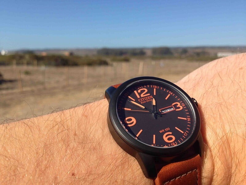 Mạnh mẽ, bụi bặm, đậm chất quân đội, đó là cảm nhận đầu tiên của tôi khi chiêm ngưỡng cỗ máy thời gian mang tên Citizen BM8475-26E. Sự kết hợp ngẫu phối giữa những màu sắc “lạ” như đen khói, nâu trầm và cam sậm tạo nên một tổng thể ấn tượng, “tưởng không hợp mà hợp không tưởng”!