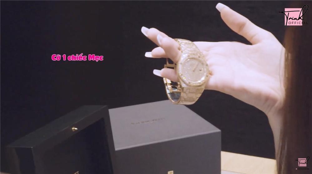 Được Ngọc Trinh mua trong dịp sinh nhật lần thứ 28 của mình. Mặt đồng hồ đính kim cương 18 carat là chi tiết đắt giá nhất, định danh mức giá đắt đỏ.