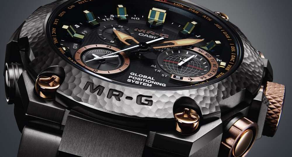 Đắt và sang trọng bậc nhất của G-shock phải kể đến dòng sản phẩm MR-G. Những siêu phẩm có kim dạng Analog như đồng hồ truyền thống, được làm từ Titanium - chất liệu đặc biệt trong trong ngành công nghiệp vũ trụ. Mỗi chiếc MR-G có giá lên tới 3000$.