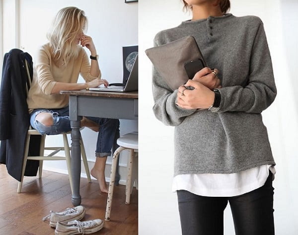 Đối với chị em công sở, các loại quần áo thường sử dụng là áo vest, quần âu, sơ mi đơn giản hoặc cổ điển, chân váy chữ A, chân váy bút chì hoặc váy maxi. Có rất nhiều kiểu trang phục khác nhưng những loại trên là điển hình vì tính lịch sự mà vẫn đảm bảo sự thoải mái của nó. Màu sắc được ưa chuộng cũng là những màu cơ bản như trắng và đen.