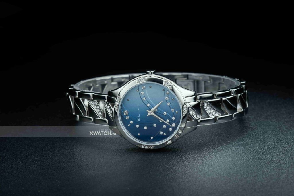 Đối với phái đẹp, họ luôn đề cao sự sang trọng, nổi bật khi mua bất kì món đồ phụ kiện, trang sức nào. Vì vậy, khi để bắt gặp Elixa E119-L486 rồi thì chắc chắn họ sẽ không thể bỏ qua. Điểm nhấn đầu tiên đó chính là mặt số. Thiết kế hai kim nhọn, mỏng và lược bỏ ô lịch đã giúp tạo không gian để người nghệ nhân đính lên đó những viên đá quý lấp lánh. Khi nhìn xa, trông chúng như những vì sao trên dải ngân hà. Nhưng khi nhìn gần, những viên đá màu trắng được sắp xếp chạy dài theo các đường vân trên mặt số giống như những giọt sương đang lăn trên lá cây cỏ dại vậy. Thật trong trẻo và mỏng manh phải không?