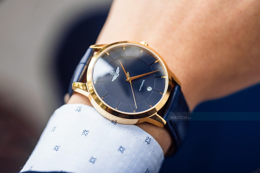 Sắc XANH NAVY sâu thẳm như lòng đại dương ngẫu phối lạ mắt với sắc VÀNG PHÚ QUÝ nơi kim và viền đồng hồ tạo nên một tổng thể ấn tượng nơi mặt số.