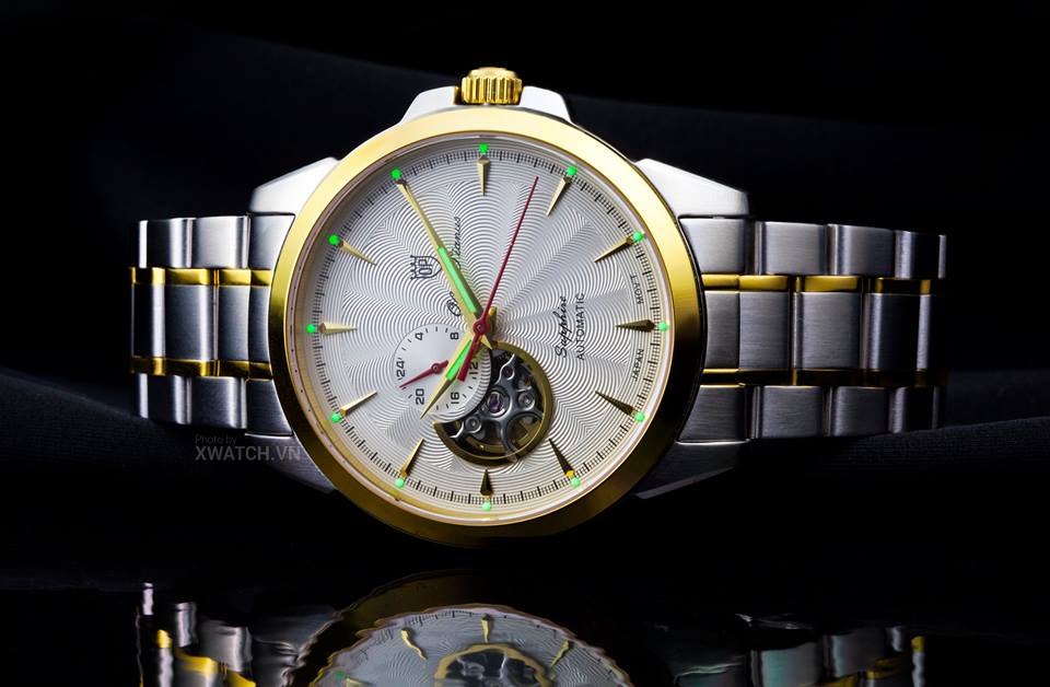 Vài năm trở lại đây, kiểu thiết kế demi Skeleton (Open heart) rất được yêu thích. Không hở toàn phân mà chỉ e ấp "lộ" một phần, cửa sổ Open Heart cho người dùng trải nghiệm một chút chuyển động nhịp nhàng của cỗ máy thời gian. Khá thú vị!