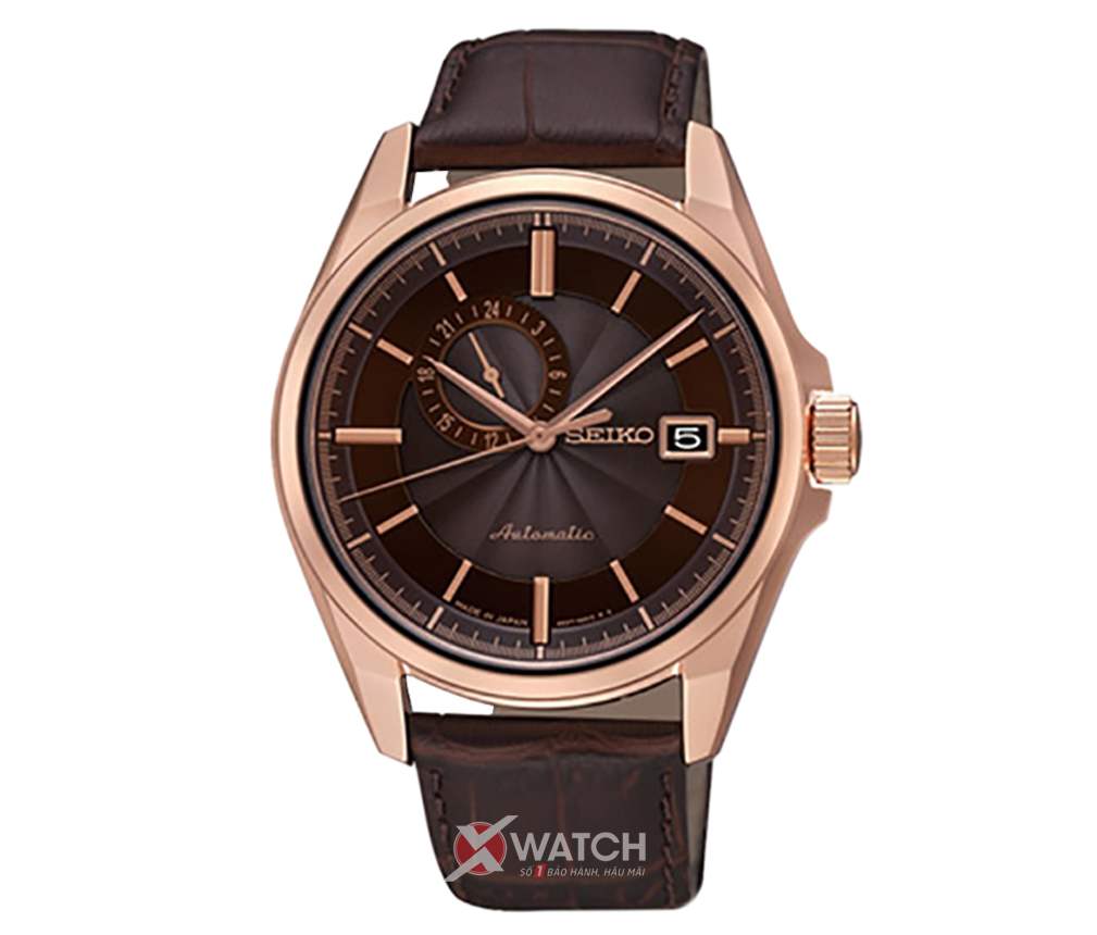Đồng hồ sở hữu lớp mạ vàng hồng thời thượng phủ trên phần case, núm và các chi tiết trên mặt số. Mặt đồng hồ và dây da cùng màu nâu trầm của SSA202J1 còn khiến ta liên tưởng đến những thiết kế đồng hồ Thụy Sĩ cổ điển. Đây chính cũng chính là phong cách xu hướng đồng hồ trong năm vừa rồi.