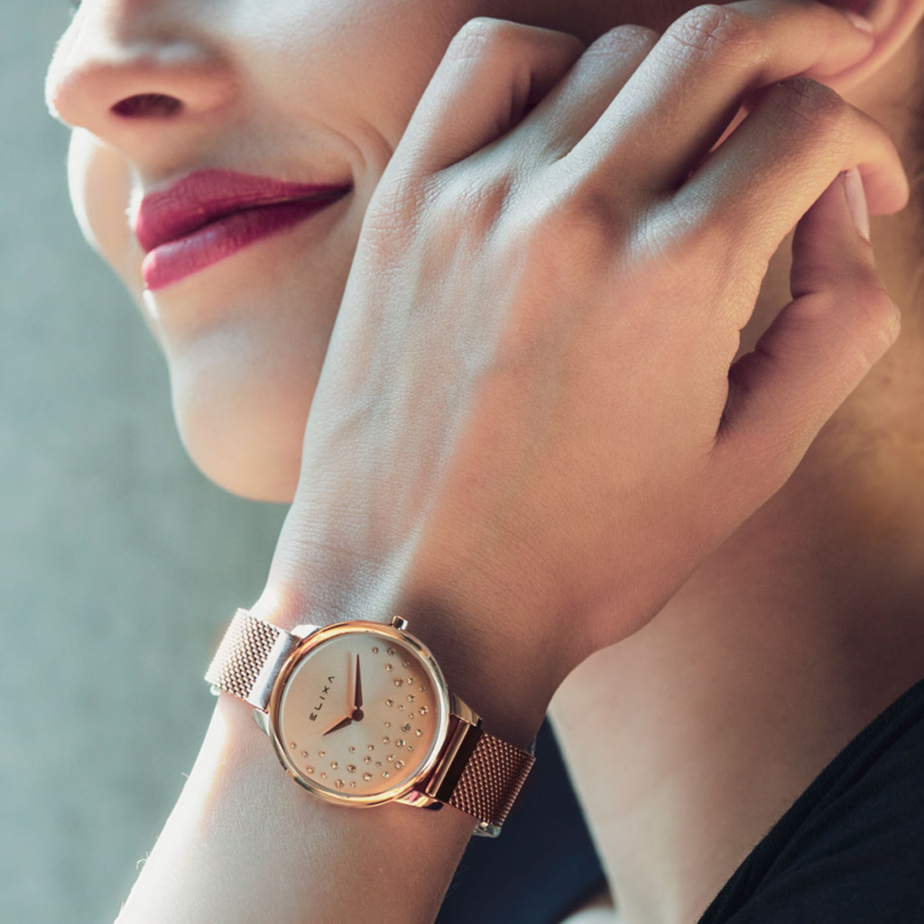 Trong tất cả sắc mạ, vàng hồng bao giờ cũng thời thượng và tinh tế nhất. Elixa đã mang gam màu đang làm mưa làm gió trong làng đồng hồ vào đứa con cưng Elixa Rose Gold E121-L492 của mình. Lược đi chiếc kim giây, Elixa Rose Gold đơn giản và tĩnh lặng hơn. Vẫn sử dụng lối thiết kế đính đá quý, nhưng với mỗi tác phẩm, Elixa lại mang đến cho người đối diện những cảm xúc khác nhau. Ở Elixa Rose Gold là sự tinh tế đỉnh cao.