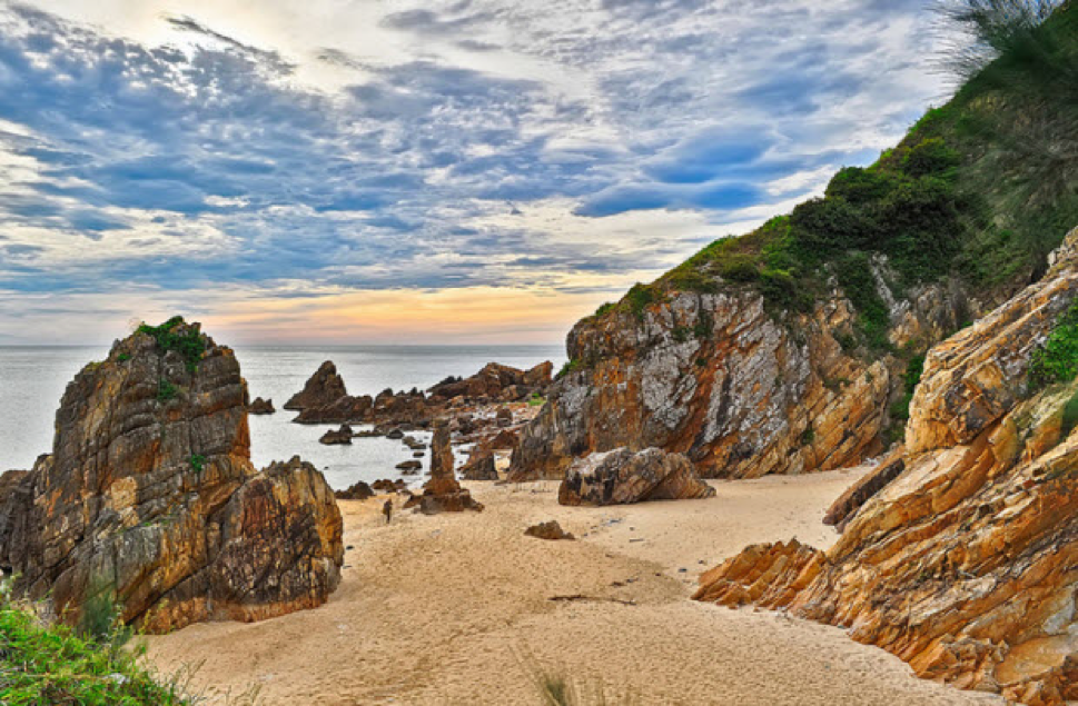 Chỉ cách trung tâm thành phố Quy Nhơn gần 25km, Kỳ Co là một bãi biển đặc biệt, đường bờ biển cong như lưỡi liềm với 3 mặt giáp núi và 1 mặt giáp biển.