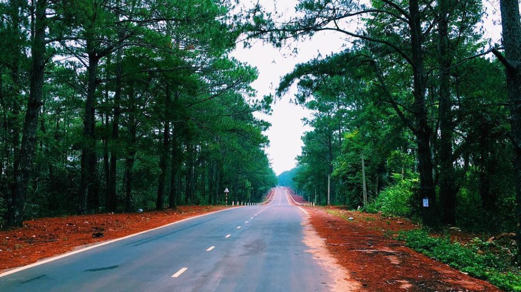 Đến với Măng Đen bạn sẽ được đi trên con đường quanh co với hai bên là những rặng thông xanh ngắt, thoang thoảng mùi nhựa thông.