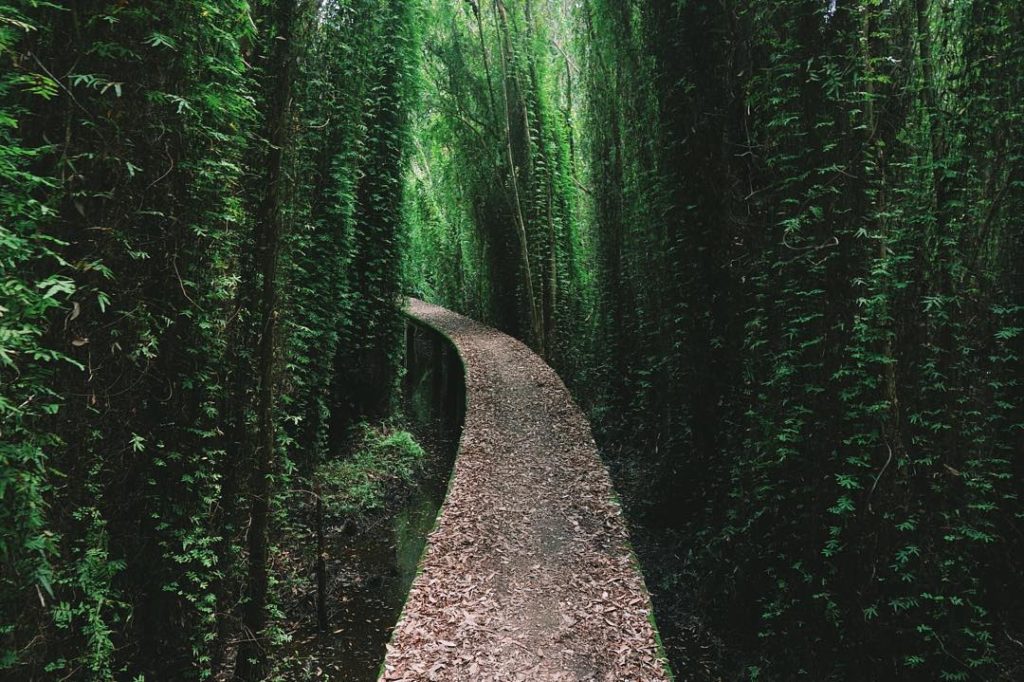 Đến làng nổi Tân Lập, du khách sẽ được khám phá con đường mòn xuyên rừng tràm dài 5 km, ngắm nhìn vẻ đẹp của những rặng tràm cao ngút trời, xanh mát.