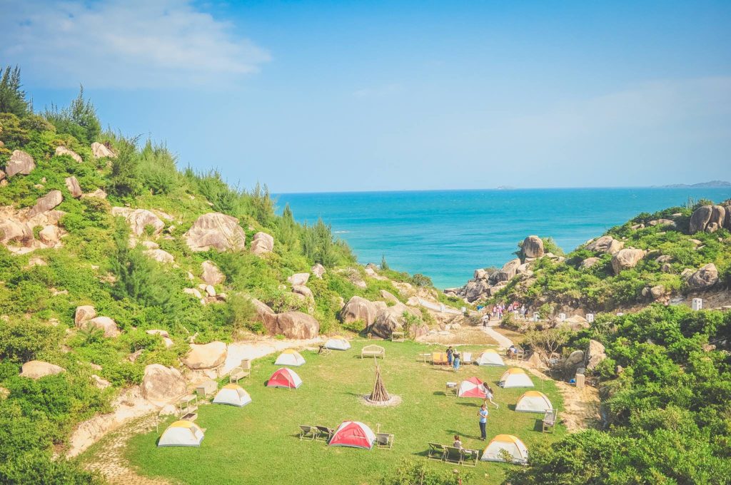 Đây là khu dã ngoại mới nổi và được “săn lùng” tráo riết bởi cái tín đồ mê xê dịch. Dù bạn là người có trí tưởng tượng bay cao bay xa thế nào đi nữa thì bạn cũng không thể tưởng tượng ra được có một địa điểm cắm trại giữa lòng núi, bên dưới là bãi cỏ xanh mướt, hai bên là núi đá nhấp nhô…nhưng trước mặt là biển xanh rì rào như ở Trung Lương đâu ạ! Đừng phí hoài tuổi trẻ nếu như không check-in khu dã ngoại này.