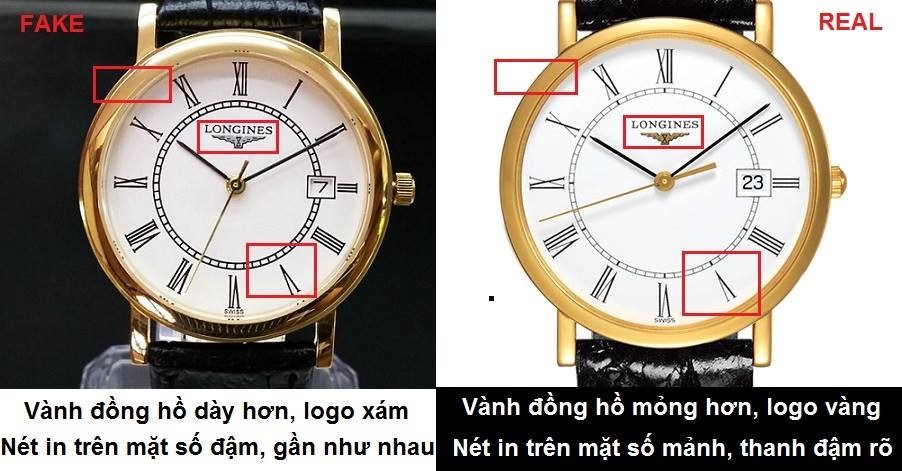 Từ ví dụ trên có thể rút ra được các đặc điểm của đồng hồ Longines fake như sau: